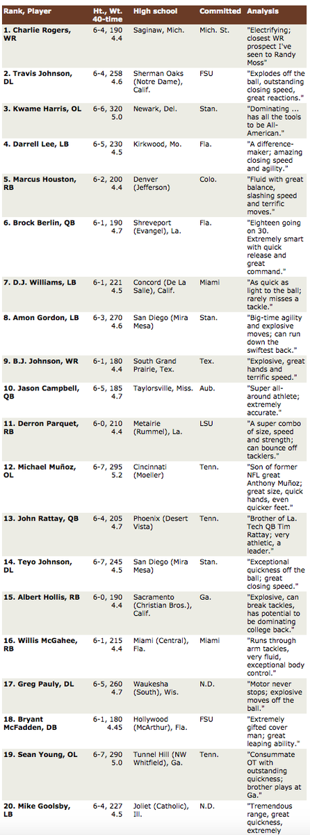 15 Years Ago: Tom Lemming's Top 20 college football recruits