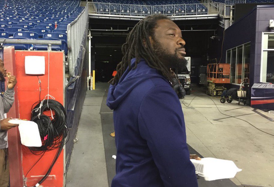 LeGarrette Blount wore a hoodie-blazer after the Patriots' win last night